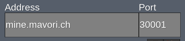 The server can be found in Luanti as mine.mavori.ch. Choose 30001 as port. If you visit the server the first time, you have to register with a username.